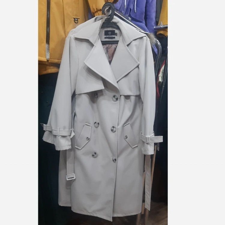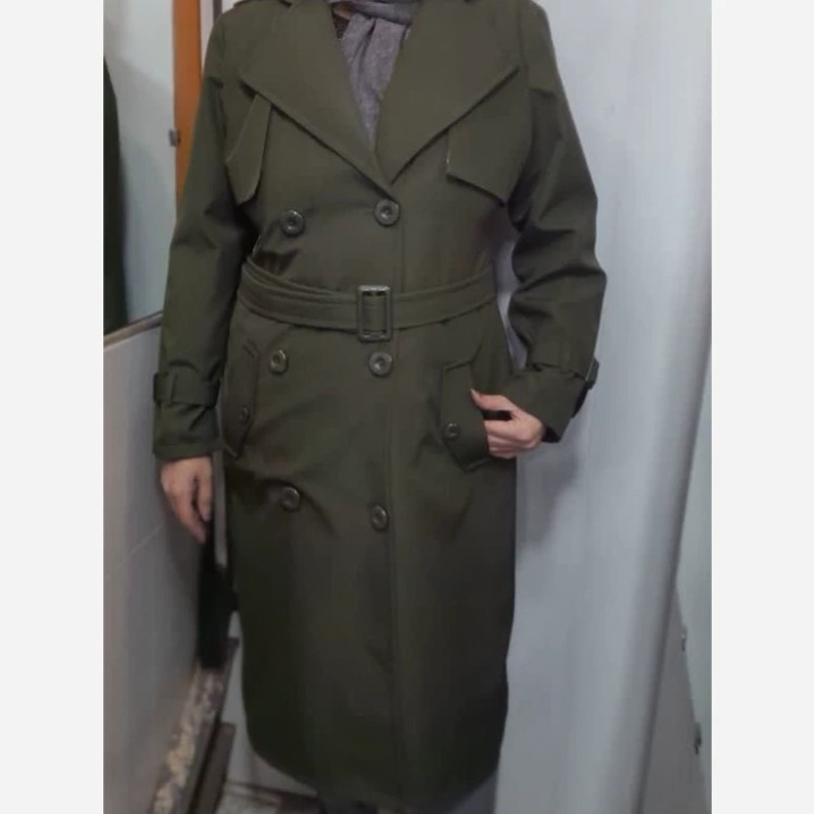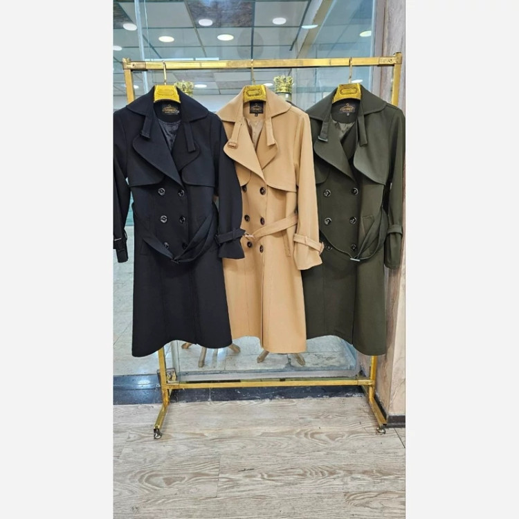 پالتو بارانی جنس سانتانا کار باکیفیت رنگ بندی طوسی و سبز سایز 38تا46