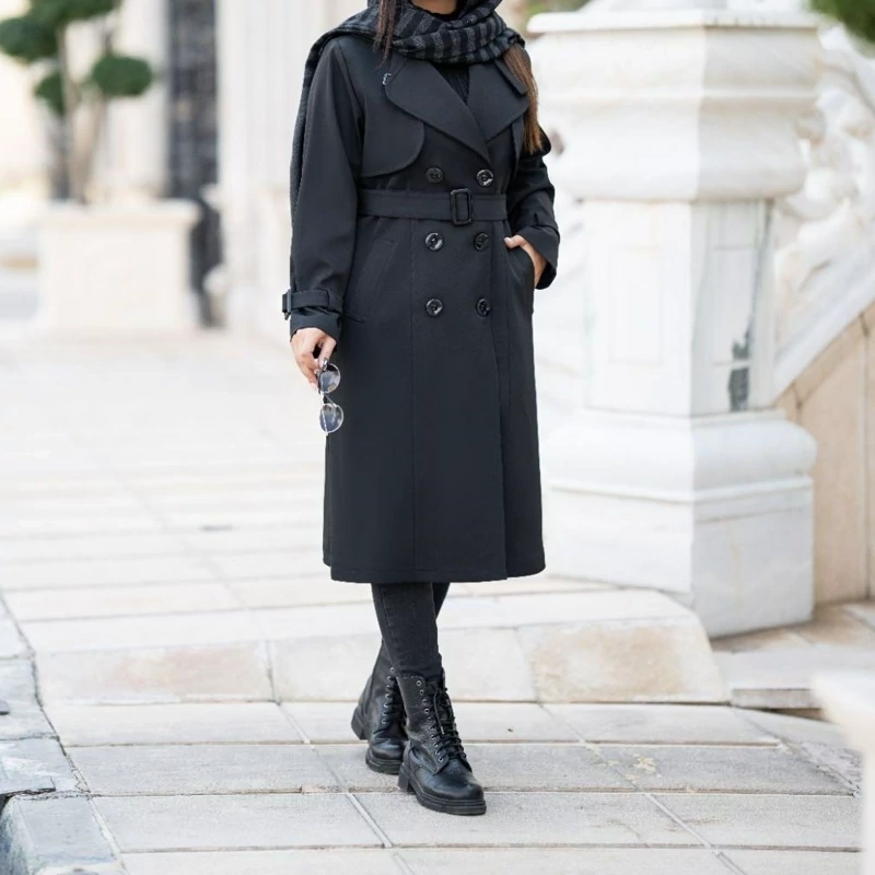 پالتو بارانی جنس سانتانا کار باکیفیت رنگ بندی طوسی و سبز سایز 38تا46