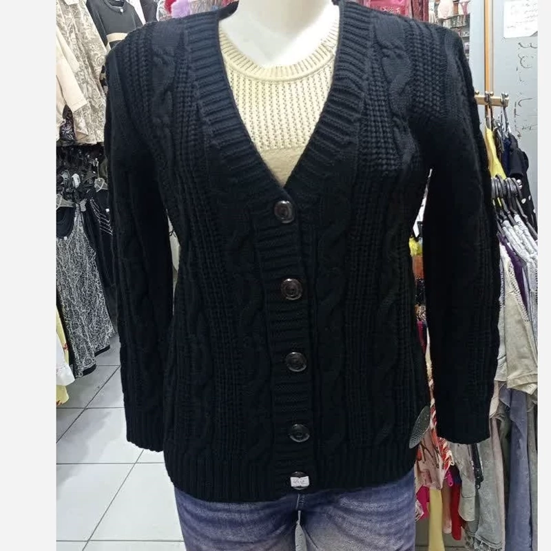 بلوز بافت زنانه جلو باز یقه هفت فری سایز به سایز38تا46