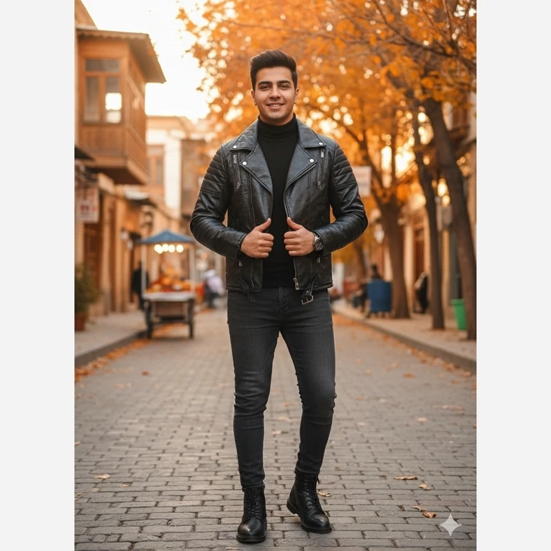 کاپشن چرم مردانه طرح پلیسی سایزL
