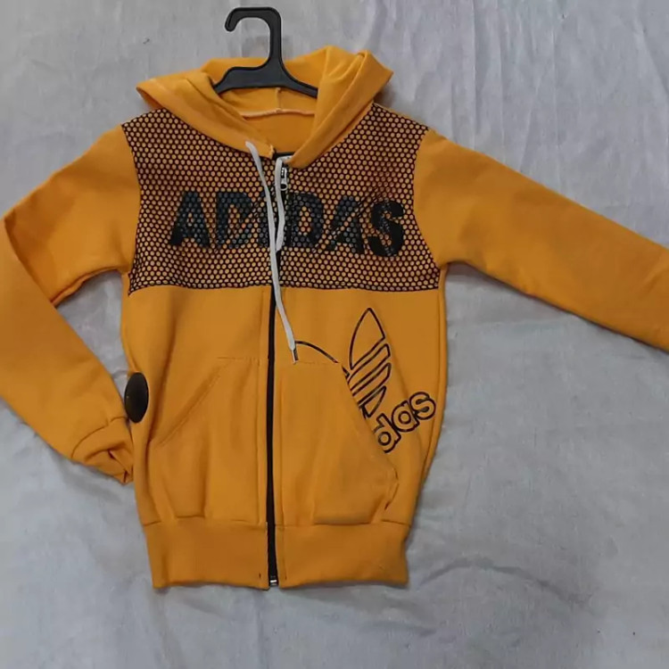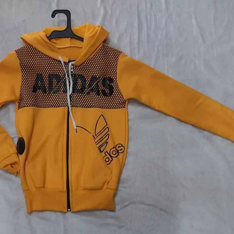 سویشرت کلاه دار پسرانه جنس دورس دونخ کا باکیفیت سایز بندی 45تا55 رنگ زرد سرمه ای مشکی طرح آدیداس
