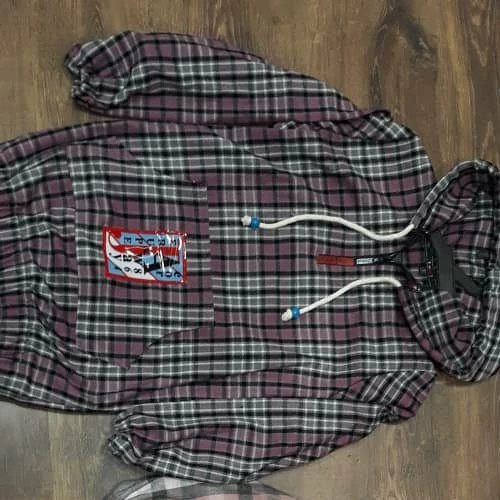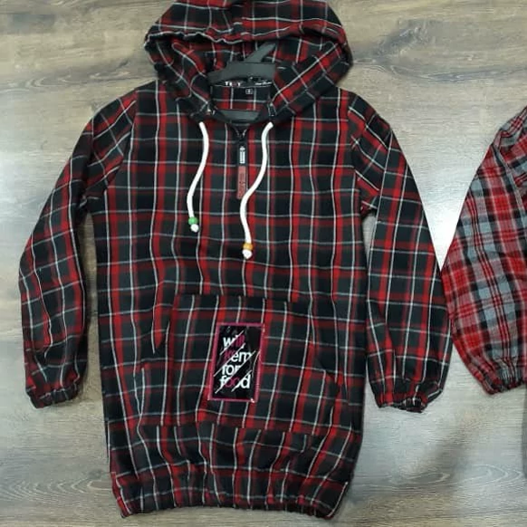 هودی چهارخونه کار باکیفیت و ضمانت دخترانه رنگ صورتی