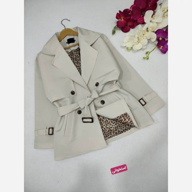 پالتو بارانی جنس سانتانا رنگ بندی سبز کرم و استخونی سایز 1تا4 که به سایز38تا44 میخوره