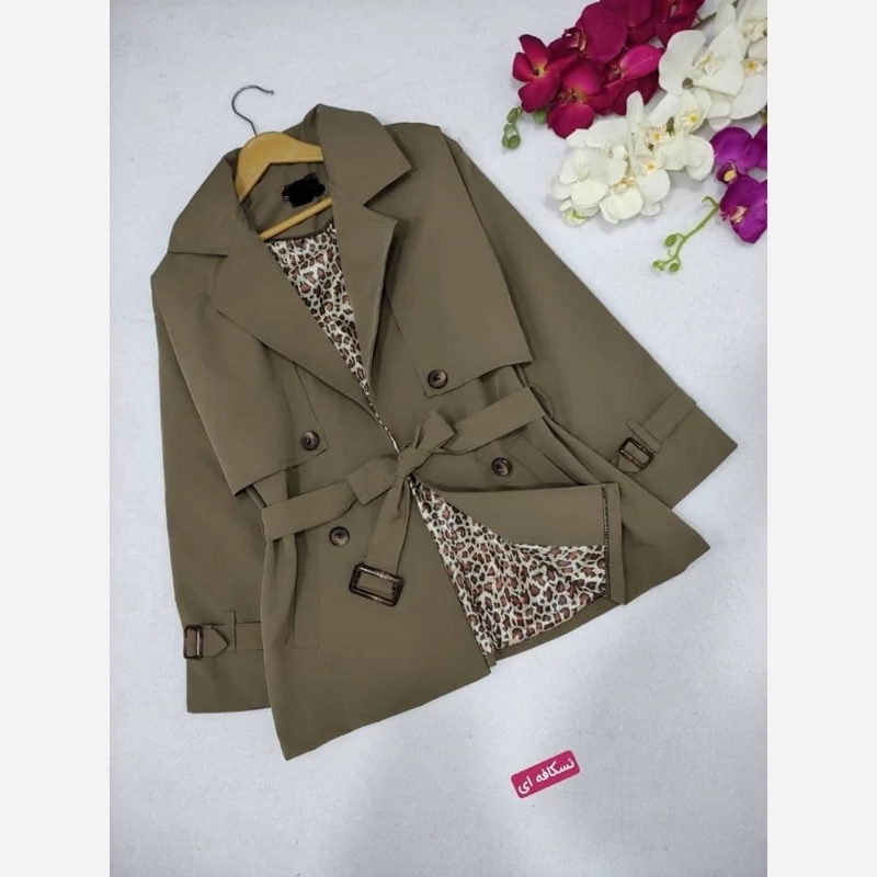 پالتو بارانی جنس سانتانا رنگ بندی سبز کرم و استخونی سایز 1تا4 که به سایز38تا44 میخوره