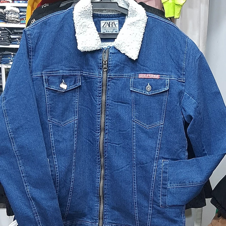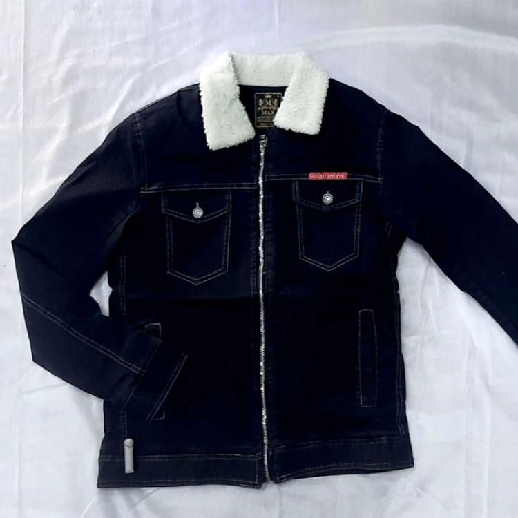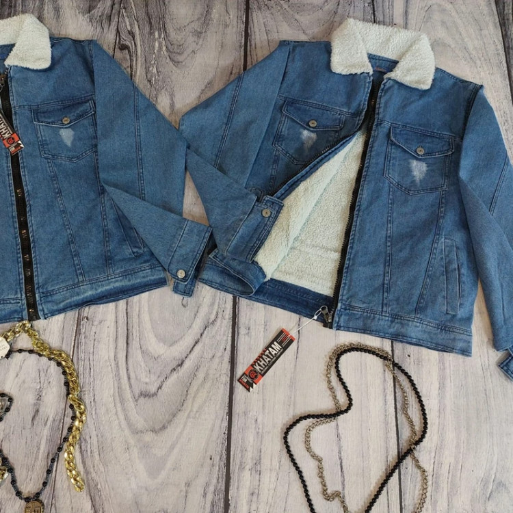 کاپشن جین تن خور زیبا و کار با کیفیت داخل خز سفید رنگ بندی آبی یخی آبی ذغالی مشکی