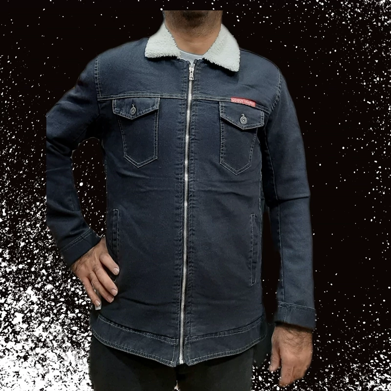کاپشن جین تن خور زیبا و کار با کیفیت داخل خز سفید رنگ بندی آبی یخی آبی ذغالی مشکی