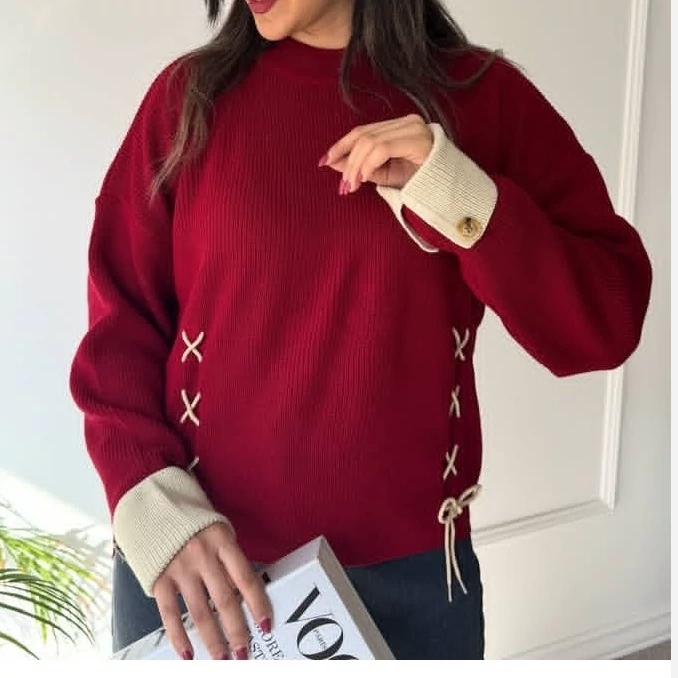 بلوز بافت زنانه یلدایی فری سایز به سایز38تا50 میخوره تن خور زیبا رنگ قرمز و زرشکی