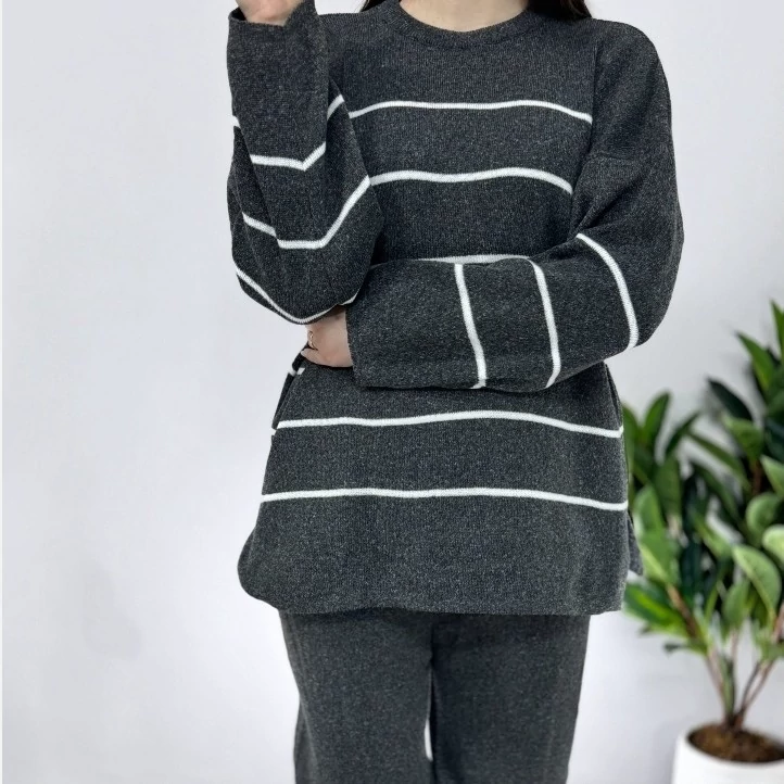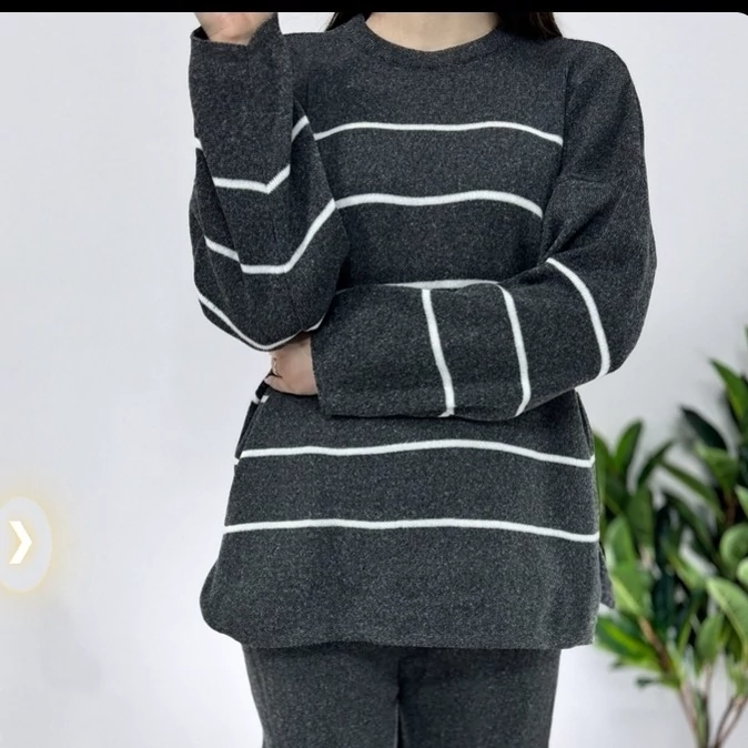 ست بلوز شلوار راه راه پینترستی زنانه و دخترانه فری سایز به سایز 38تا52 میخوره تن خور زیبا رنگ طوسی تیره و سبز موجوده