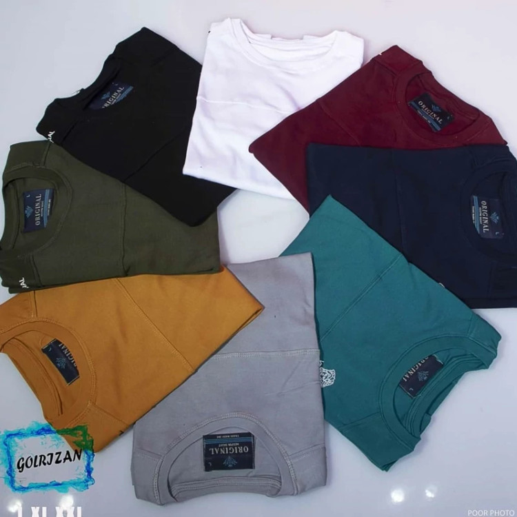 تیشرت یقه گرد مردانه تن خور اندامی کار با کیفیت نخ پنبه دو رو چهار فصل رنگ بندی طوسی سرمه ای خردلی زرشکی