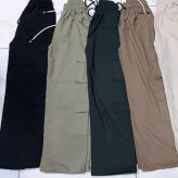 شلوار زنانه و دخترانه کارگو رنگ بندی مشکی کرم و استخونی سایز Lتا2XL دم پایین شلوار گت هم میشه