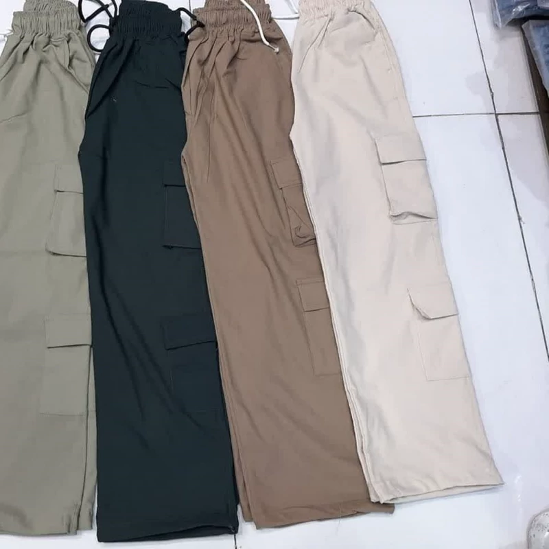 شلوار زنانه و دخترانه کارگو رنگ بندی مشکی کرم و استخونی سایز Lتا2XL دم پایین شلوار گت هم میشه